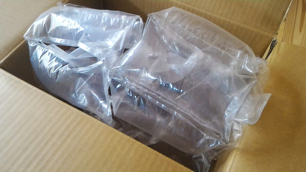 指定した日に梱包資材が届きました。箱を開けて、うっかりいつもの癖で梱包材の空気を抜こうとしてしまったのですが、入っているもの全部使うので、うっかり空気を抜かないように注意してください(笑)